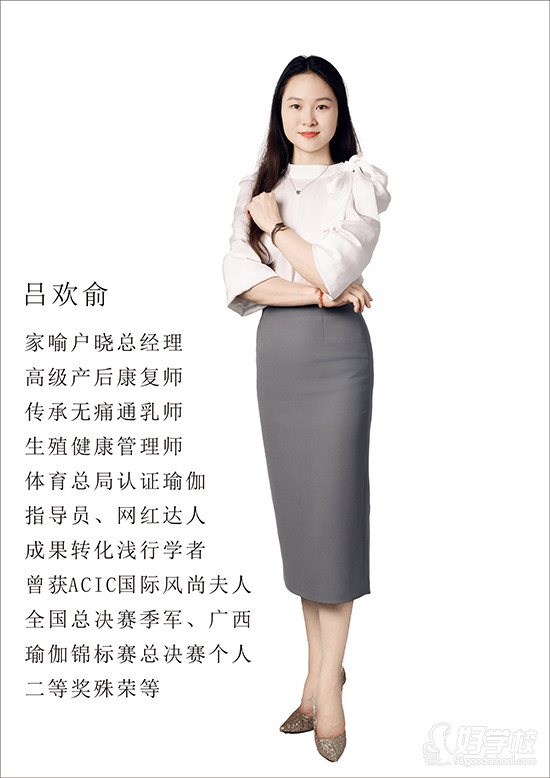 榮譽獎項:曾獲 ACIC 國際風尚夫人全國總決賽季軍、廣西瑜伽錦標賽總決賽個人二等獎殊榮等。