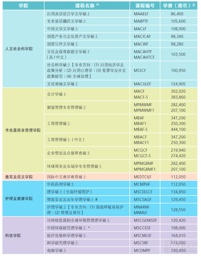 【專業(yè)及學(xué)費(fèi)一覽表】