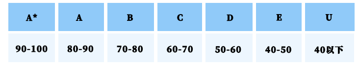 每個(gè)科目成績?cè)u(píng)定按照A*到U不同等級(jí)評(píng)定