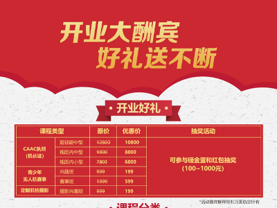 萬國航空無人機(jī)培訓(xùn)開業(yè)福利重磅來襲