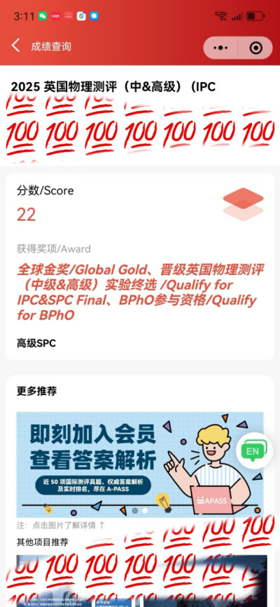 物理競賽金獎IPCS